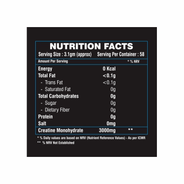 Pure Creatine Monohydrate: 3,000 mg per serving for proven strength, power, and performance enhancement.